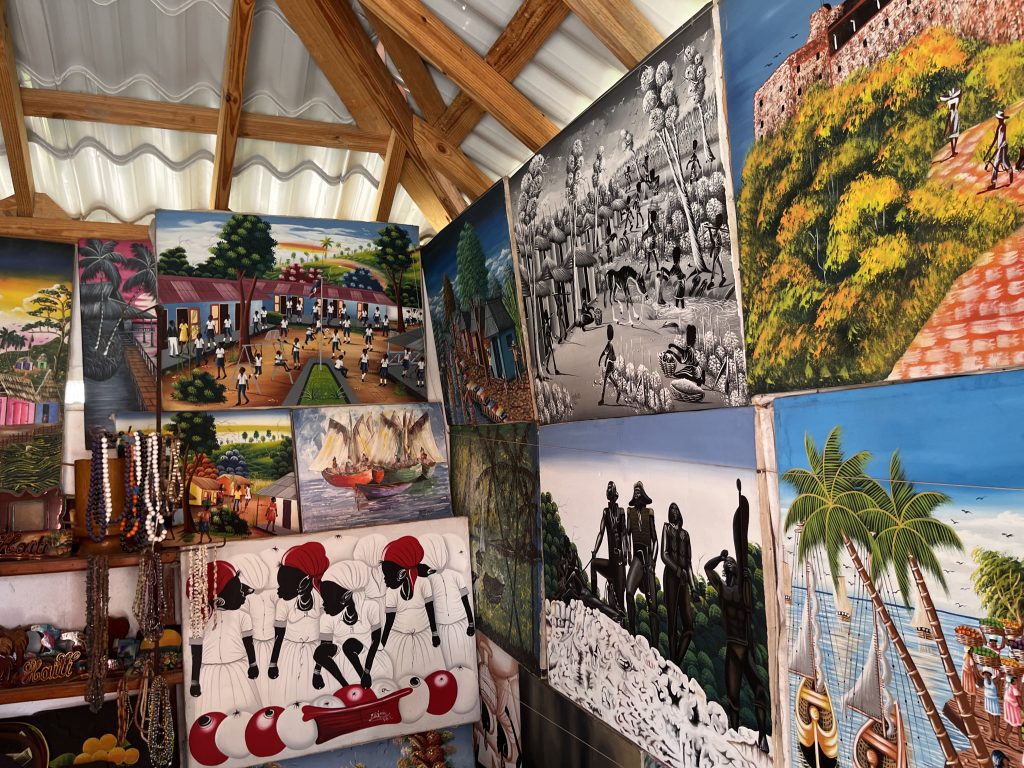 Haitian paintings adorn the walls of the Hotel Roi Christophe, all bursting with vibrant colors. Intentionally simplistic with flat surfaces and a lack of formal perspective, the artwork depicts riveting scenes of everyday life—market ladies, mountain farms, working sailboats, and Vodou ceremonies. In Haiti, art mirrors life as the people live it, a perpetual flux between the real and the surreal.